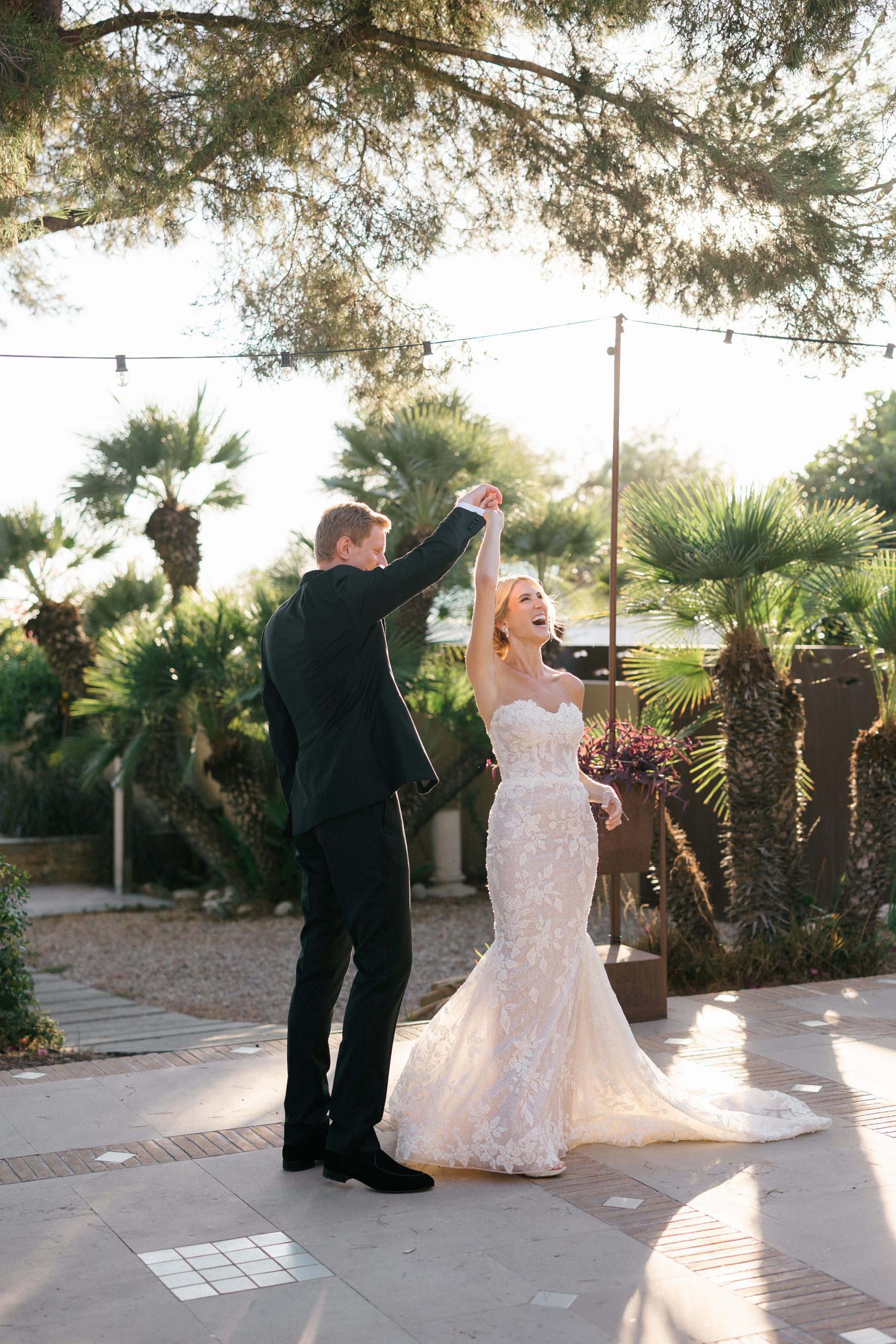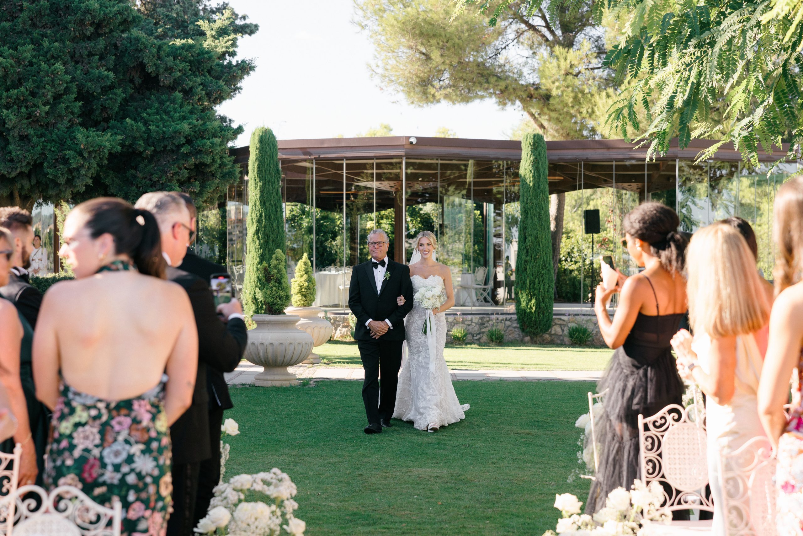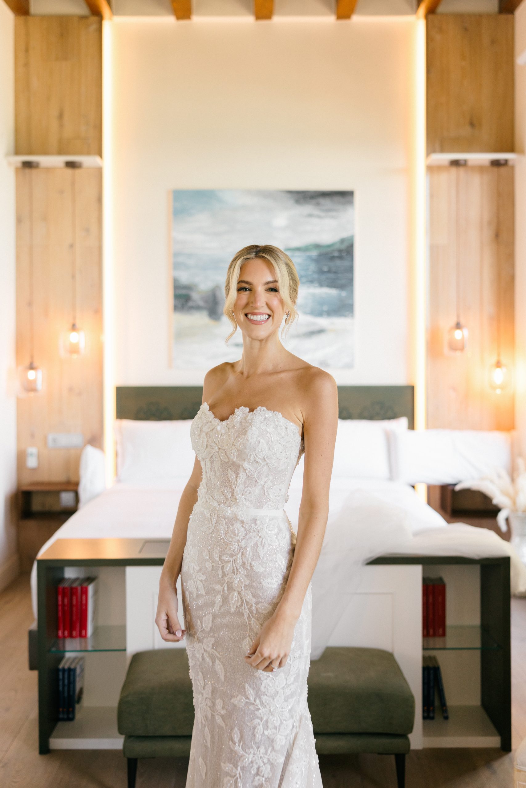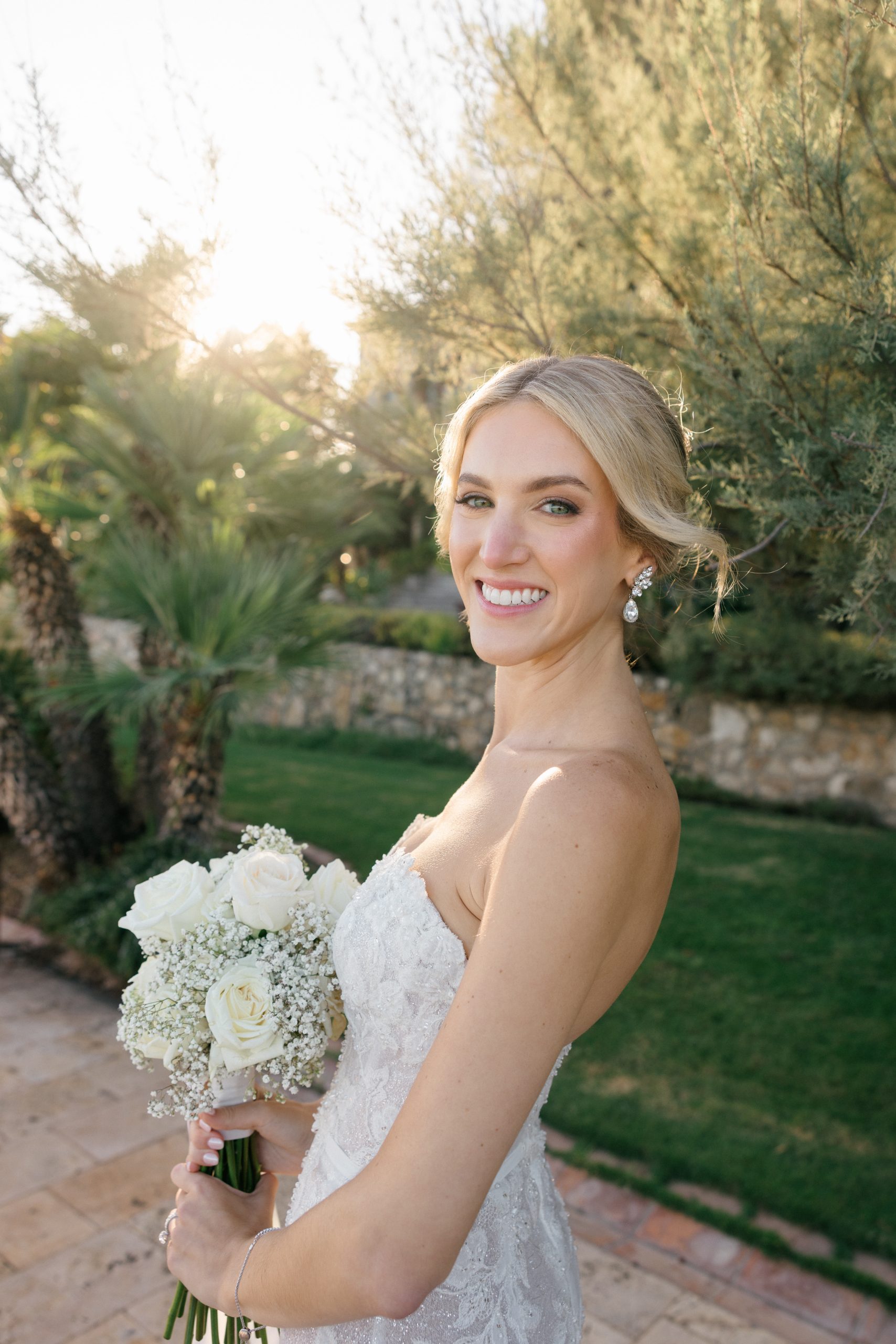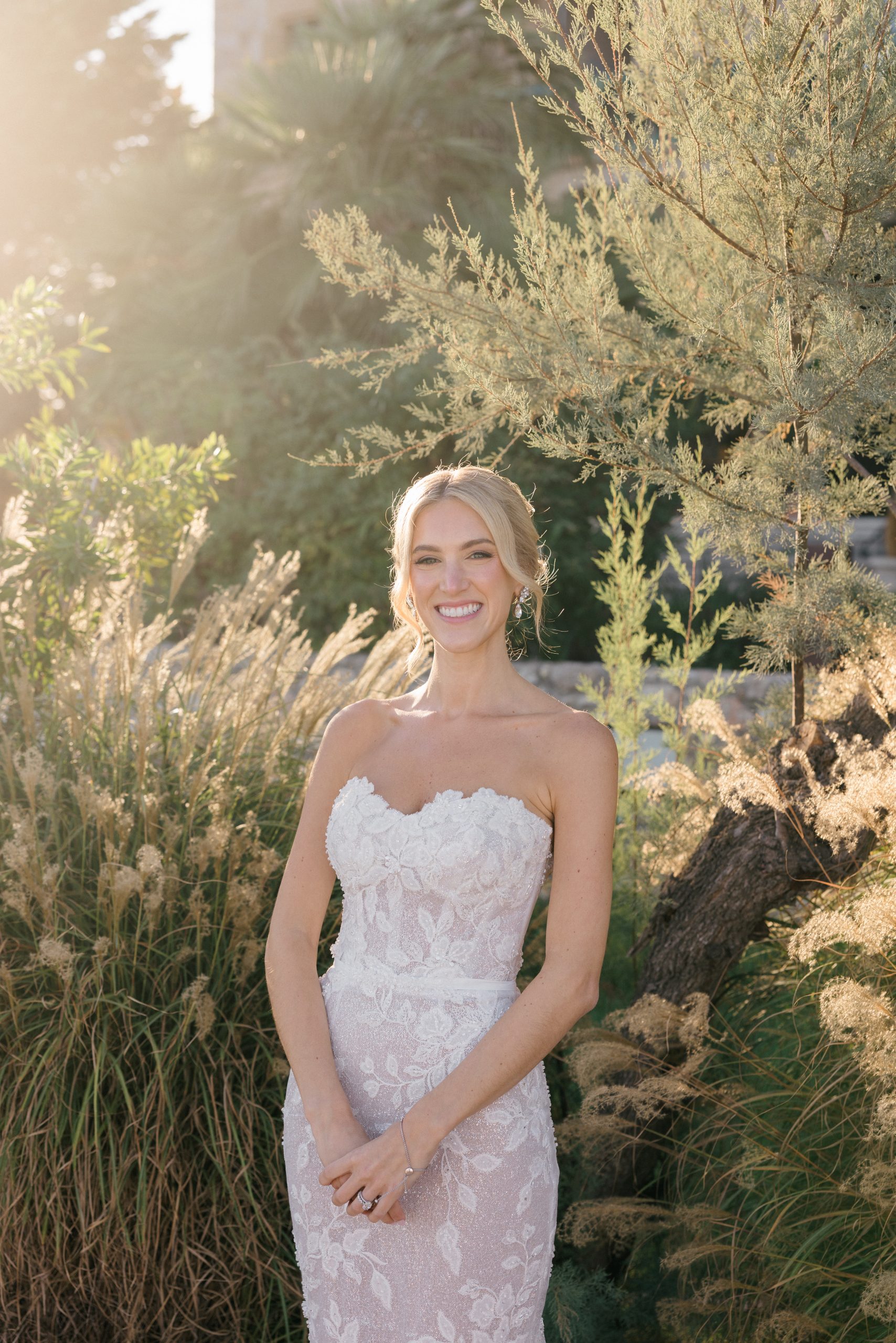 The day began with preparations inside the villa. Kendahl got ready in a light that comes through the windows and falls on the stone walls in a way that feels completely natural and completely cinematic at the same time. Vlad waited outside with the Mediterranean in the background.