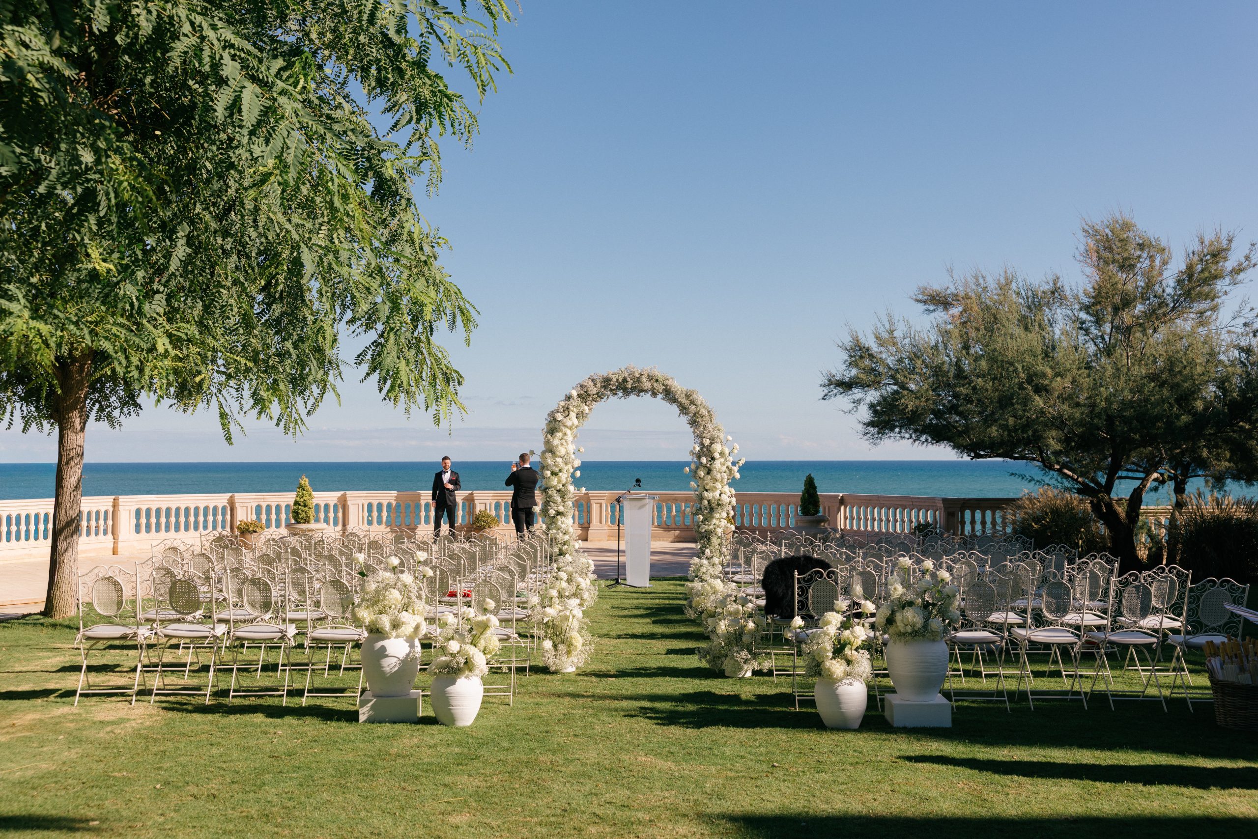 Wedding at Xalet del Nin, Vilanova i la Geltrú, is unlike anything else in Catalonia. An hour south of Barcelona, the venue combines gardens that overlook the Mediterranean with a nineteenth century villa that has the particular quality of places built to last. Kendahl and Vlad chose it because they wanted something genuinely extraordinary, not a hotel, not a resort, but a private estate with real history and real character.
